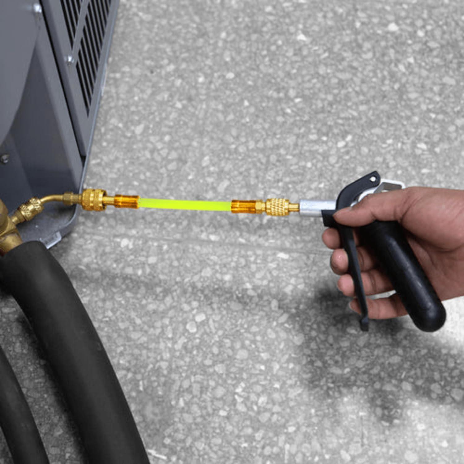 Ductless Mini-Split 410A 5/16″ – 1/4″ Adapter Converts 5/16″ SAE style connections to 1/4″. This type of connection is commonly found on ductless mini-splits and newer 410A air conditioners. Includes a built in valve core depressor and schrader valve core. Perfect for use with the Leak Saver and Leak Shot product lines.