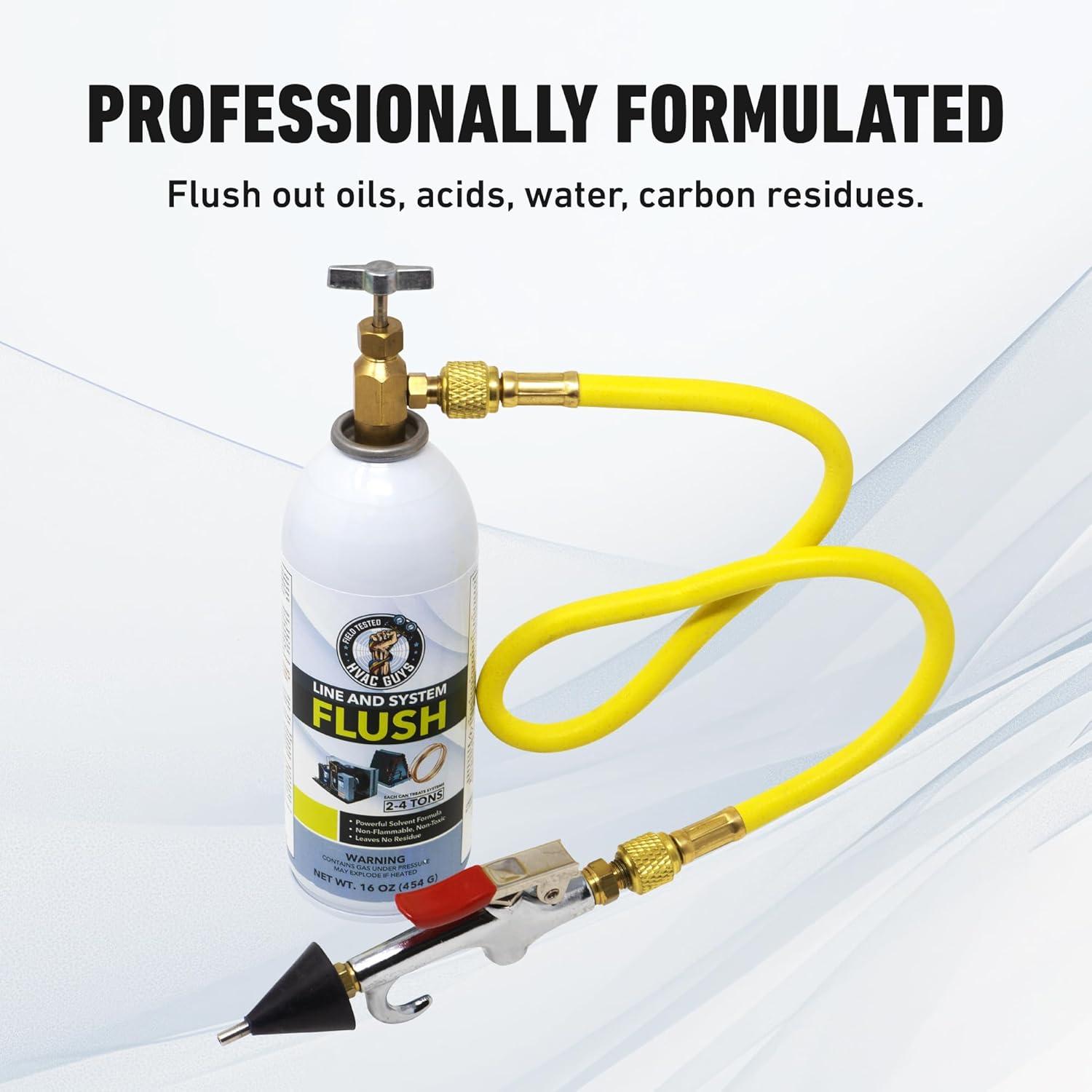 POWERFUL HVAC FLUSH KIT FORMULA: Specifically formulated and effective in flushing out oils, acids, water, carbon residues, and other buildup from HVACR systems. It is excellent for refrigerant conversions, compressor burnouts, and component changes.