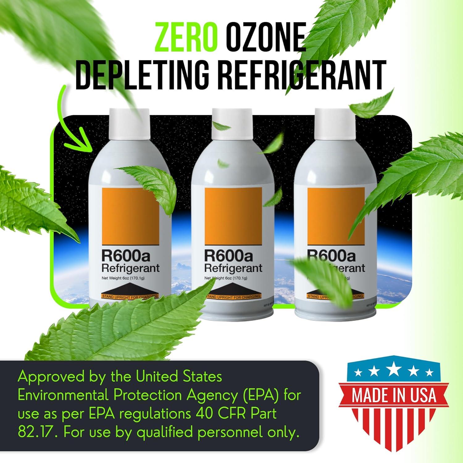 NON-REFILLABLE CANS: R600a in 6 oz. non-refillable cans. R600a for HVAC use in a 6oz self-sealing container.